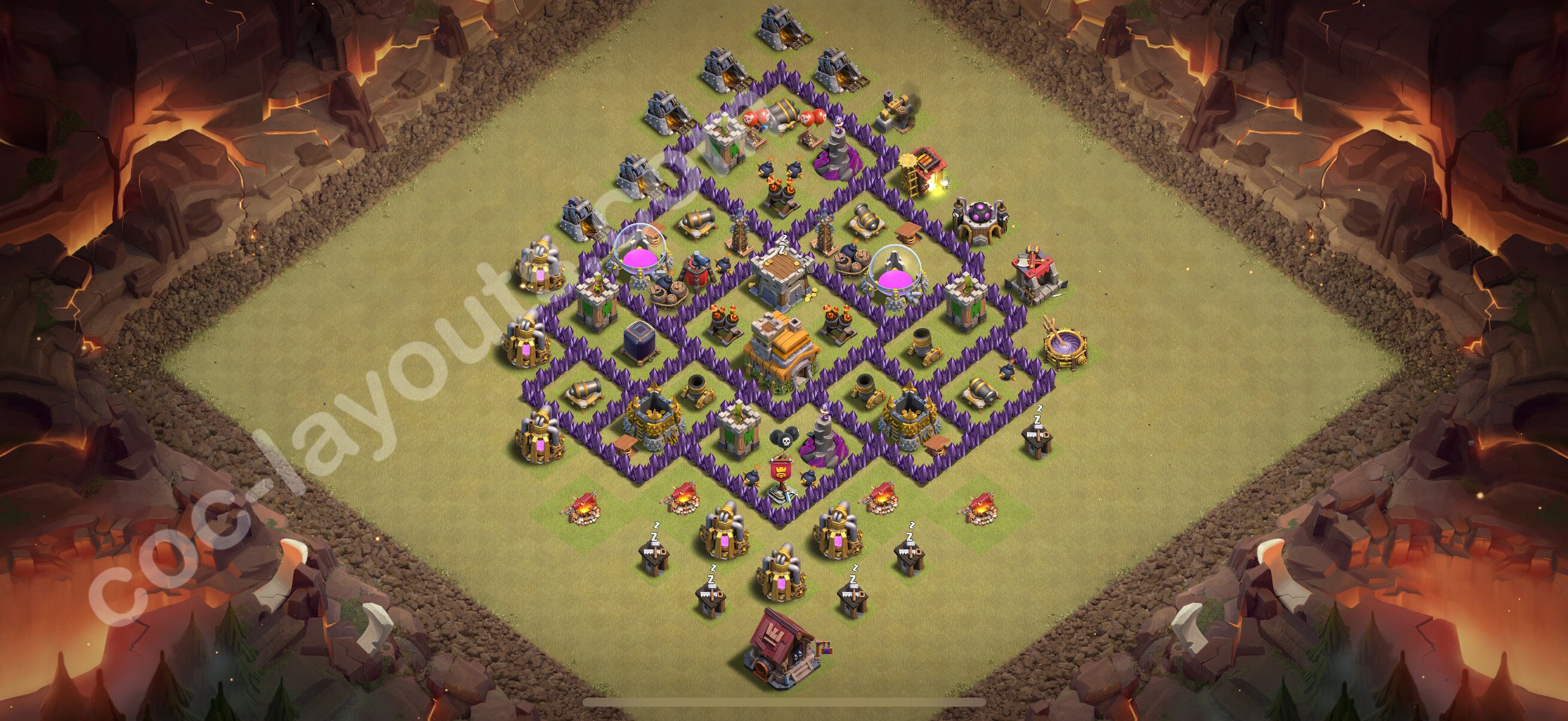 Die Anti 2 Sterne War Base vom RH7 + Link, Hybrid - COC Rathaus Level 7 Kriegsbase - CK / CW Base 2026 - (#157)