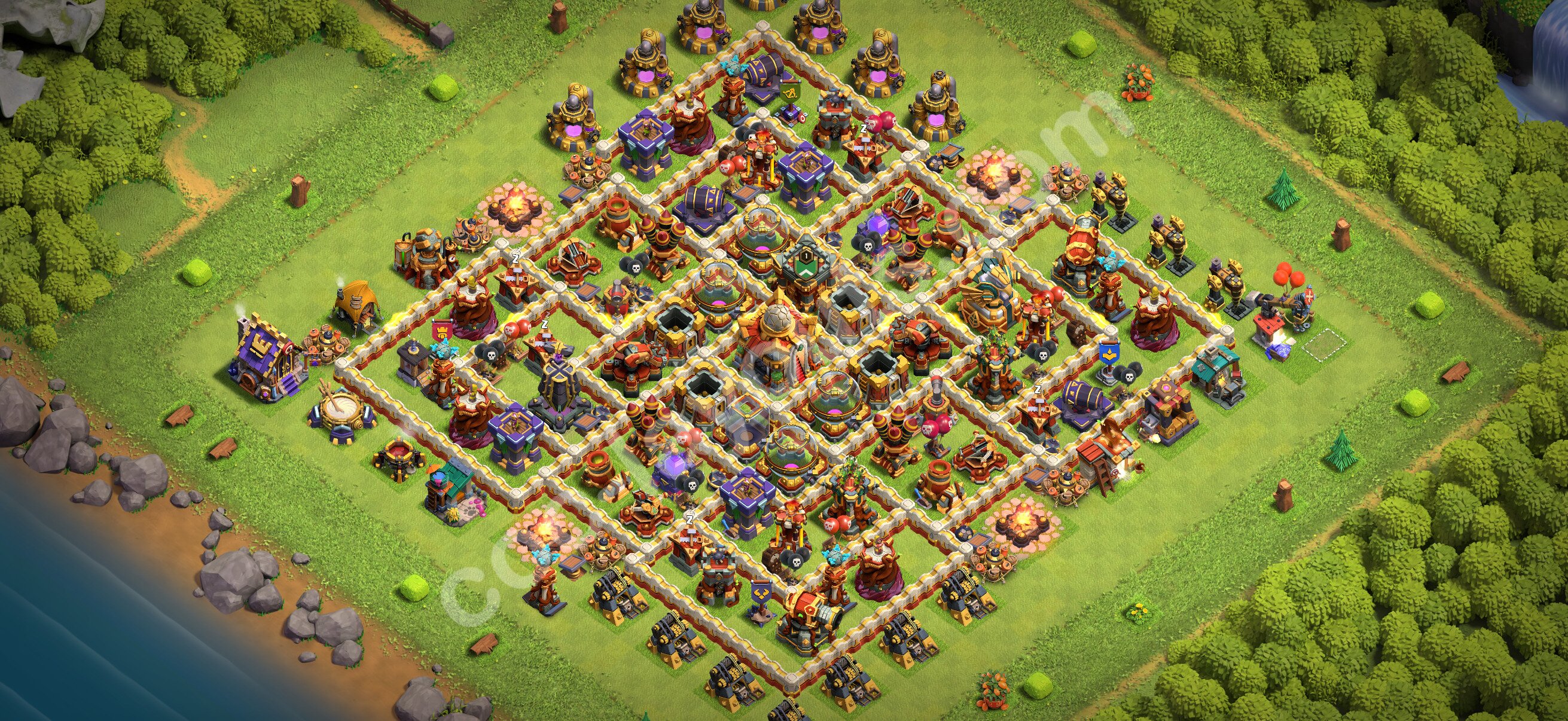 Diseño de aldea Defensa Ayuntamiento 16 + Enlace - COC Clash of Clans 2026 - (#70)