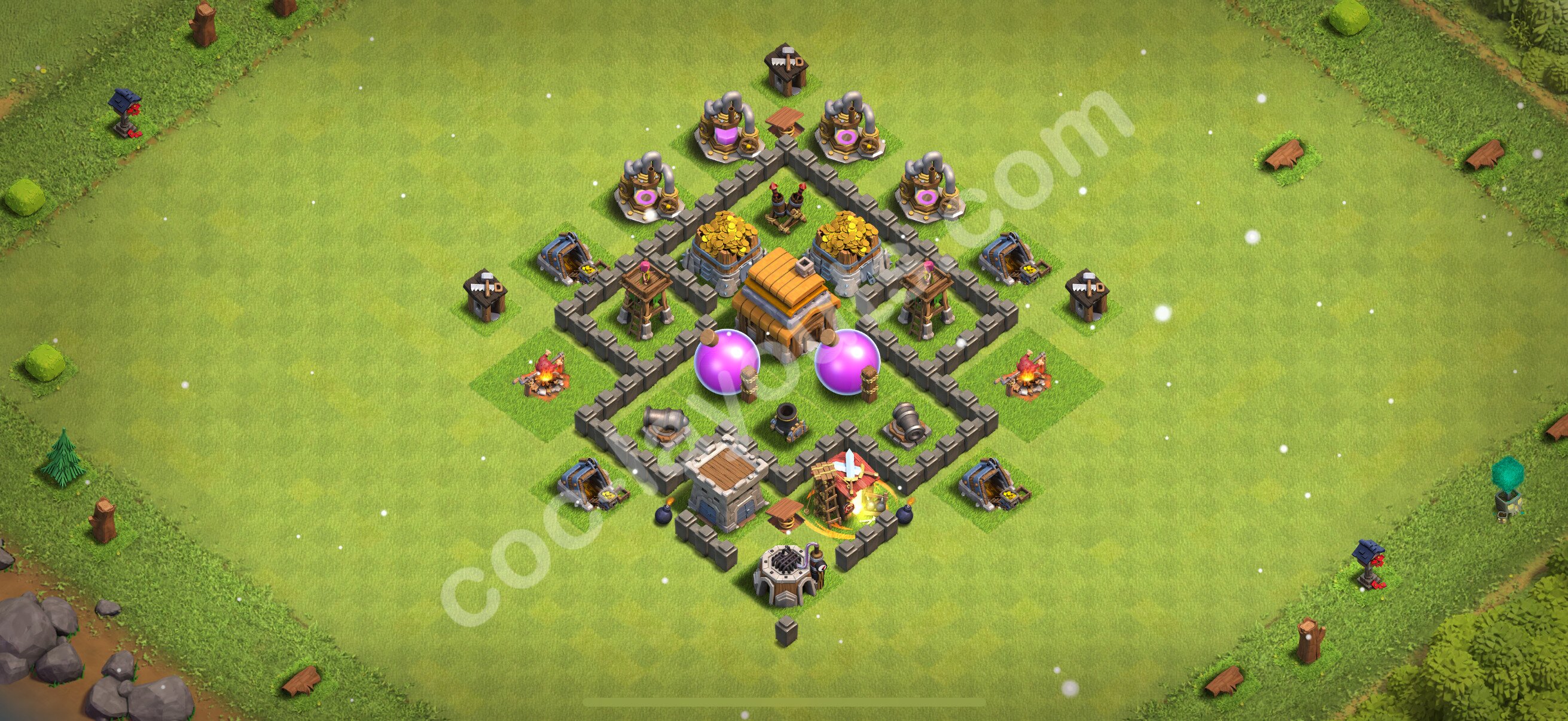 Municipio livello 4 per Risorse Farming + Link, Ibrido - Miglior Disposizione Villaggio TH4 Clash of Clans 2025 - (#123)
